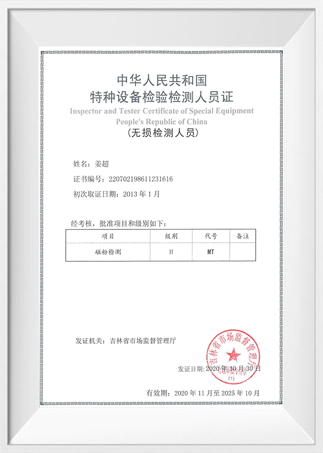 Сертификат инспектора и испытателя спецтехники Китайской Народной Республики